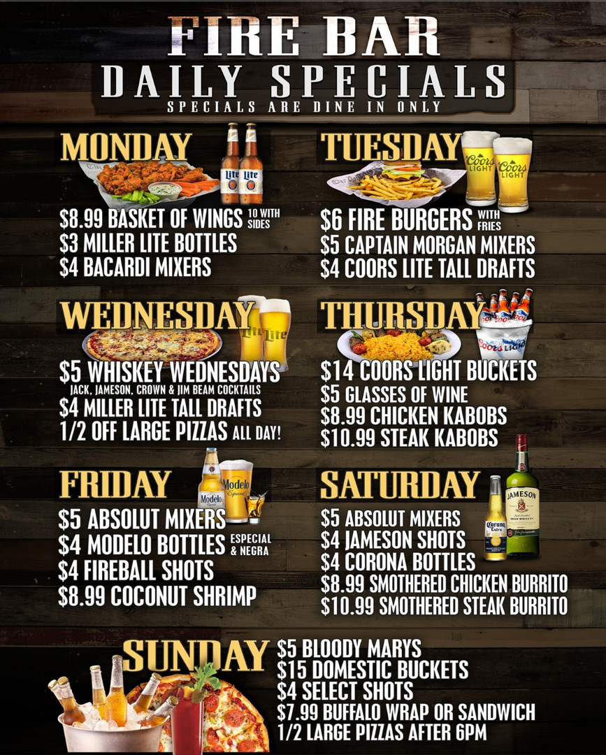 Fire Bar Grill Menu In Crystal Lake Illinois Usa